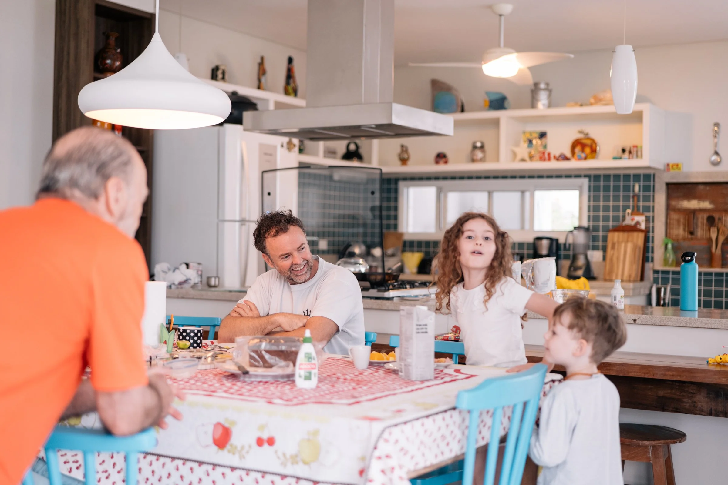 Dos momentos da tão aguardada chegada de Ba, Beto, Pedro e Ana.