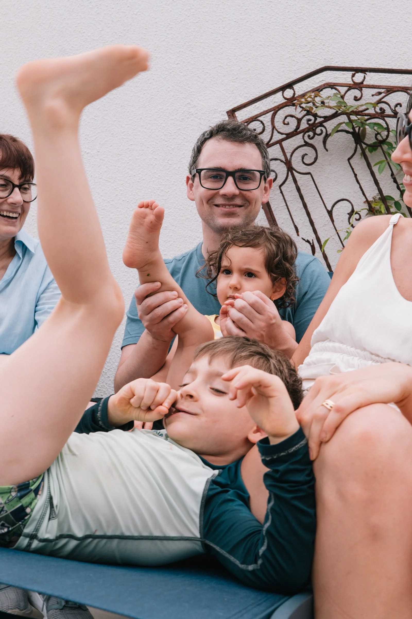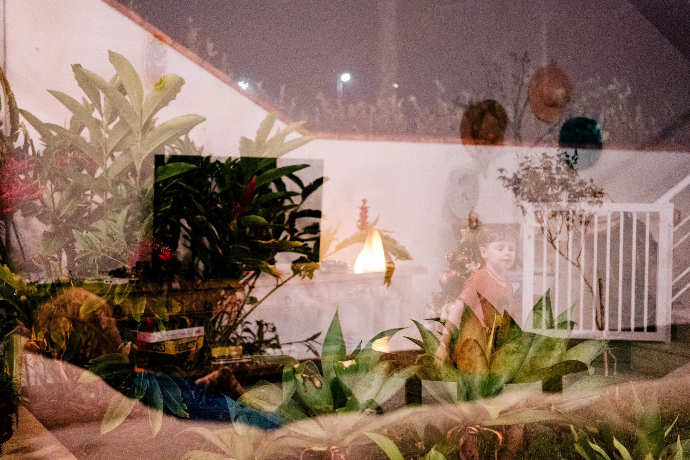 Dos momentos em que, logo após acordar, Lis brincou com vô Edu e caçou borboletas.